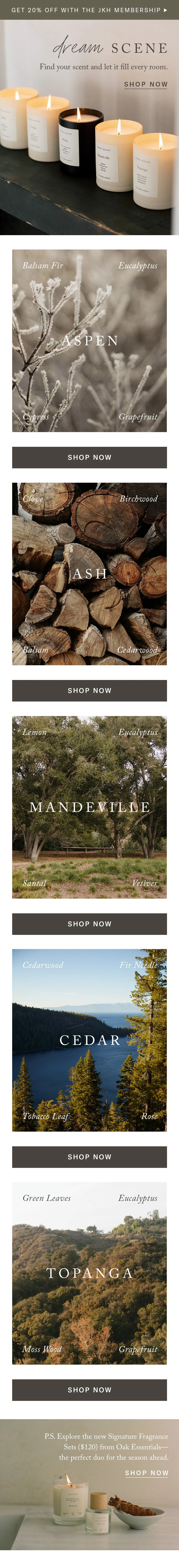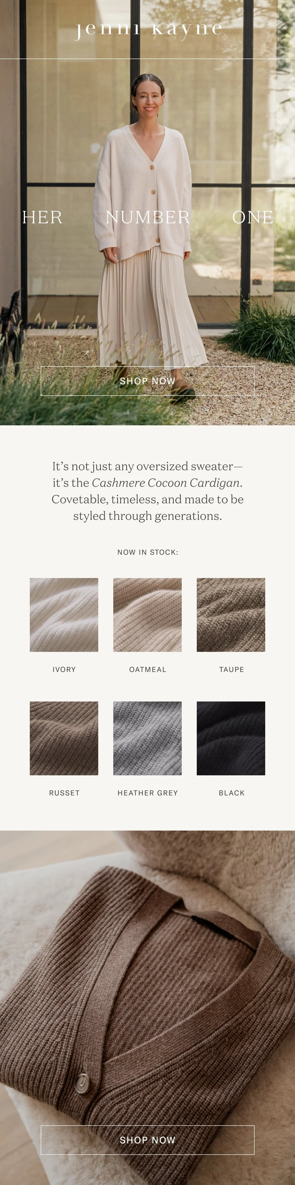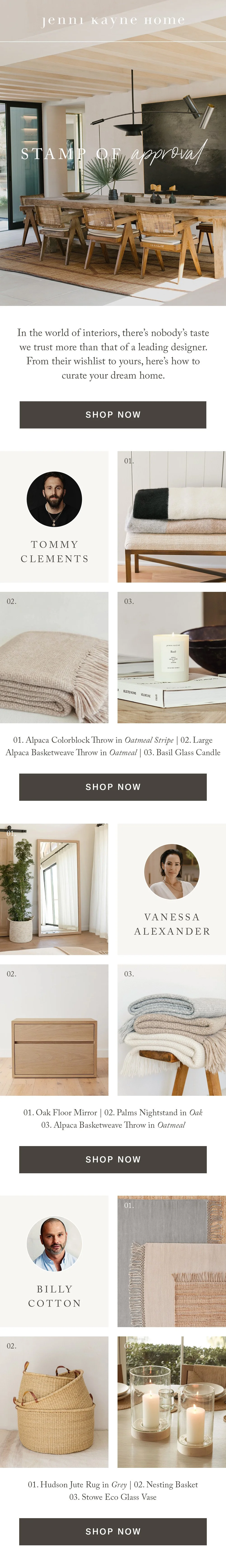 As the Art Director and Senior Designer for Jenni Kayne, I led the design and development of high-performing email campaigns from concept to execution, balancing brand storytelling with performance goals. I partnered closely with the Retention Marketing team to build out our email channel, continuously refining our campaigns through A/B tests in order to optimize our click-through and conversion rates.