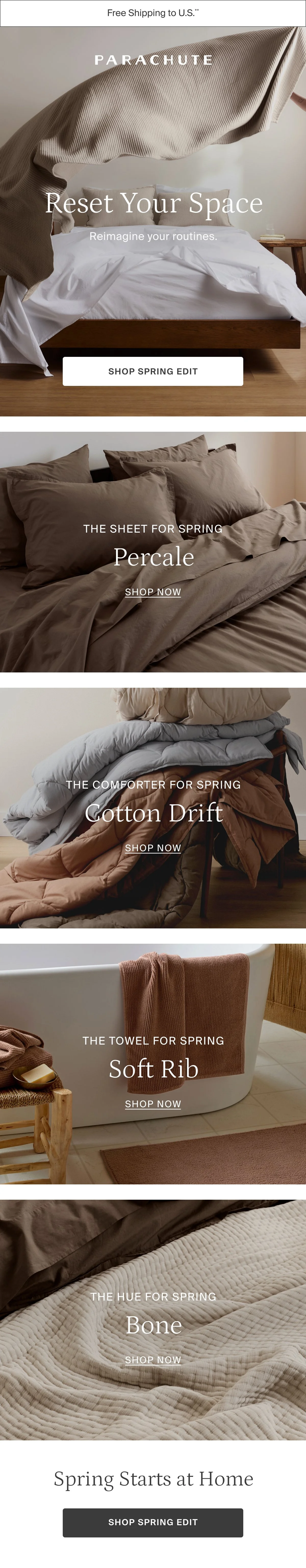 Email marketing campaigns designed for Parachute Home
